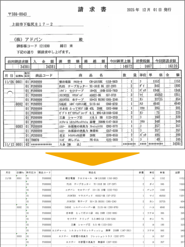 仕入業者からのPDF請求書をExcel化し、経理処理をスムーズにします。